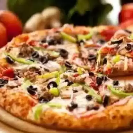 Molho especial, mozzarella, orégano, azeitona, tomate, bacon, presunto, frango, milho e calabresa.